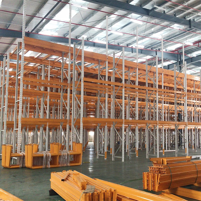 采用橫梁與立柱相結(jié)合的結(jié)構(gòu)形式,單層隨重可達(dá)1-3噸,可存放托盤,也可配置層板使用,貨架可自由拆裝,調(diào)距為75mm。
