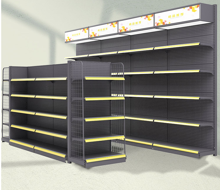 果。貨架頂端可增配廣告牌分類牌,便于對(duì)所陳列的商品進(jìn)行分類指示,對(duì)顧客購物形成有效引導(dǎo),提升顧客購物體驗(yàn)。