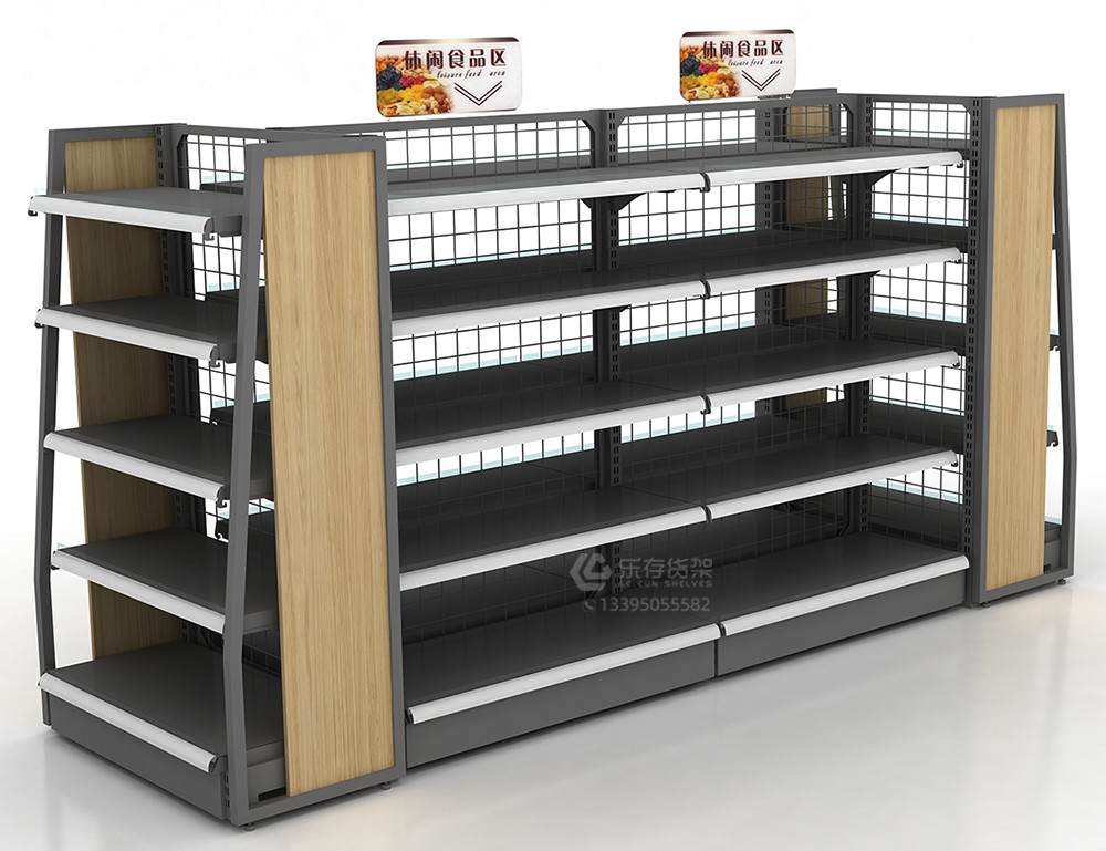 【特點】精選優(yōu)質冷軋鋼材打造整體框架,加粗加固網(wǎng)背板設計,再搭配簡約時尚的木質側板,多色可選,完美匹配各種超市便利店裝修風格,實用性與美觀性并存,有效增強超市商品展示的效果。貨架頂端可增配廣告牌分類牌,便于對所陳列的商品進行分類指示,對顧客購物形成有效引導,提升顧客購物體驗。