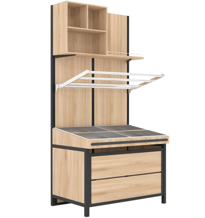【特點(diǎn)】精選優(yōu)質(zhì)精品木材打造整體框架,可增配廣告牌分類牌,便于對(duì)所陳列的商品進(jìn)行分類指示,對(duì)顧客購(gòu)物形成有效引導(dǎo),提升顧客購(gòu)物體驗(yàn)。